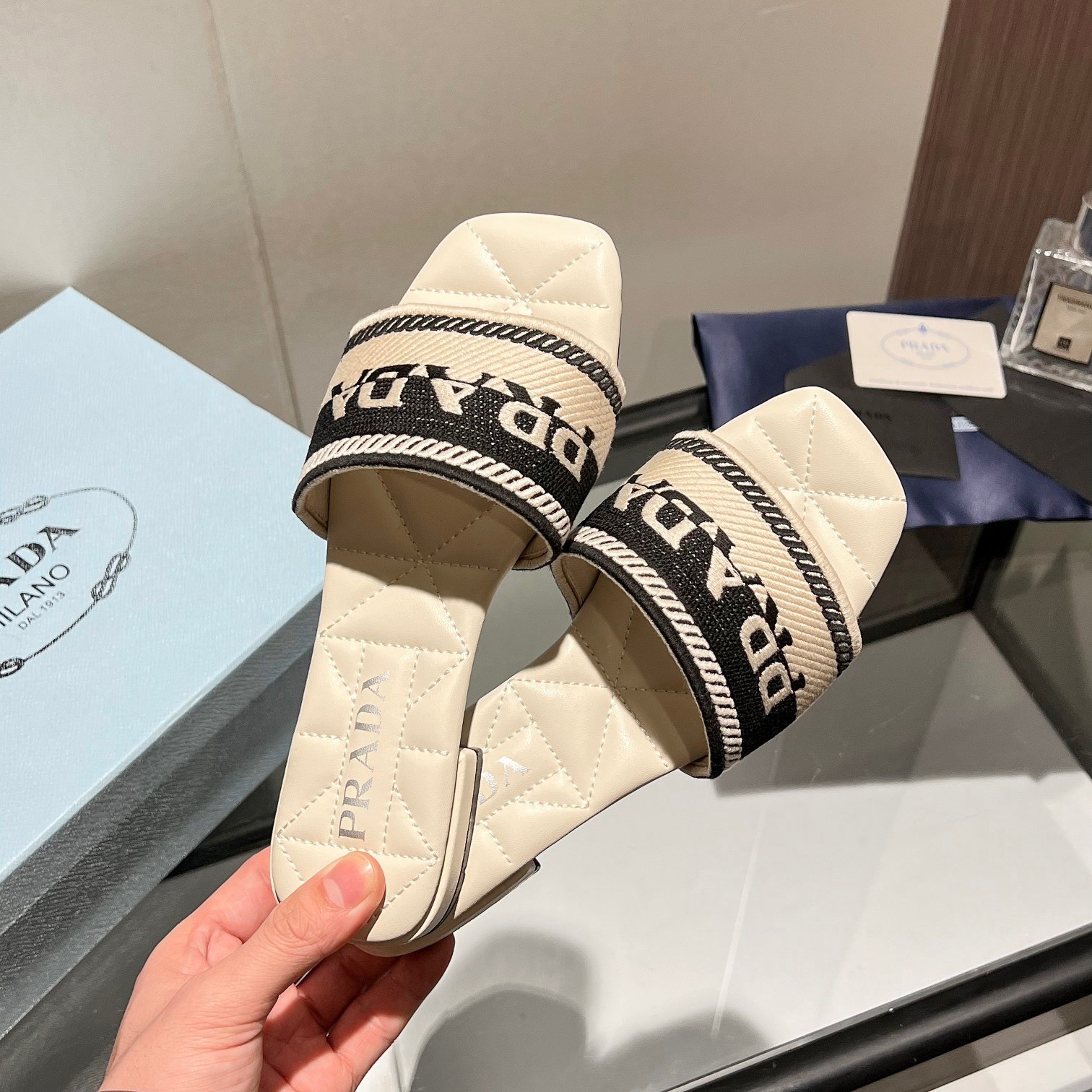 • Prada Logo EmbroideryFashion Sandals Slide Sandal (Replica)