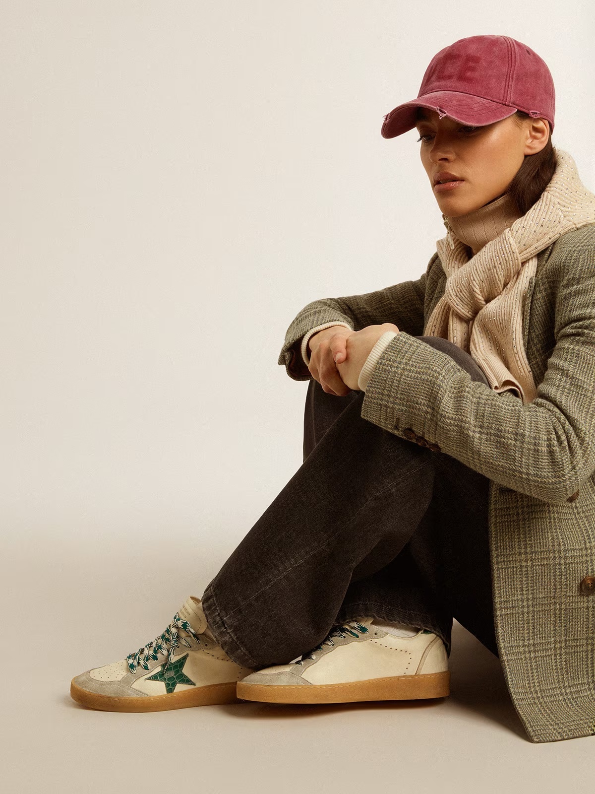 Home / Shoes / Golden Goose GGDB Women's Ball Star LTD in nappa with green crocodile-print leather star