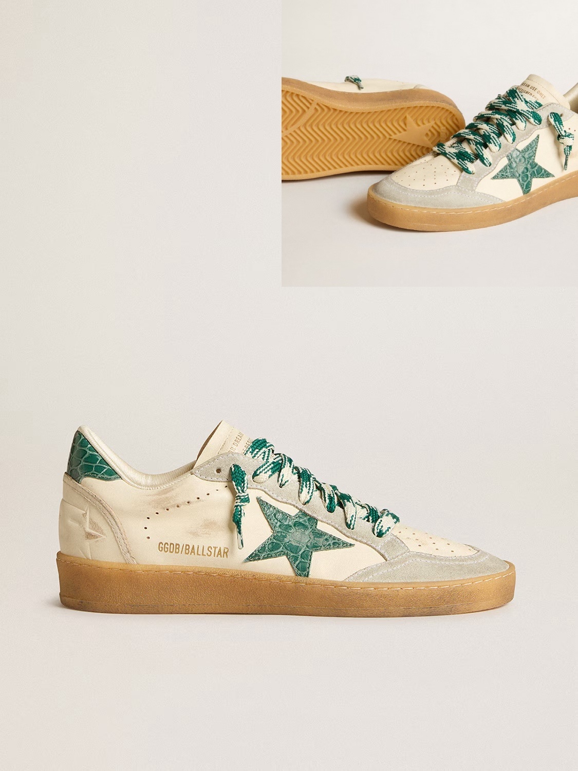 • Golden Goose GGDB Women's Ball Star LTD in nappa with green crocodile-print leather star